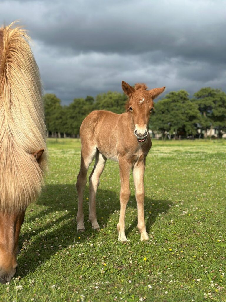 We willen het liefst paarden fokken die rustig zijn in de omgang, niet snel onder de indruk zijn van hun omgeving en goed gesocialiseerd zijn in de kudde. Onze intentie is om grote, sterke allround paarden te fokken vier en vijfgangers. We fokken jaarlijks zo’n twee tot vier veulens. Langzaam hebben we de mogelijkheid om met steeds meer eigen gefokte merries en hengsten door te fokken, het is erg leuk om te zien hoe de ‘familietrekjes’ doorgegeven worden over verschillende generaties. In 2025 is ons veulen Dýrkandi op de keuring als tweede van Nederland geëindigd van onze eigen hengst Grisi van Ijslanderij de Sijphoeve.